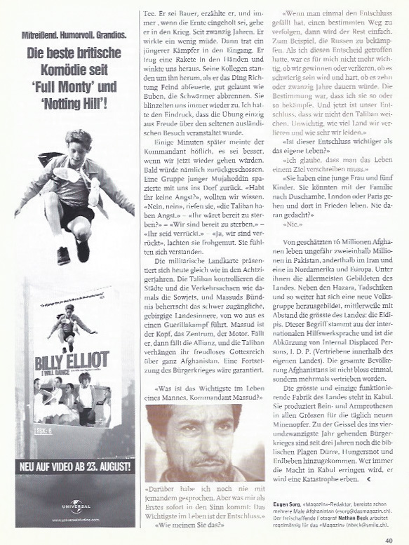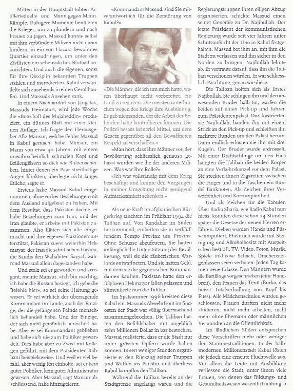«Auf beiden Seiten der Front stehen Krieger mit Bärten, auf beiden Seiten tragen die Frauen die Burka. Warum sollte jemand wie zum Beispiel ich für die Nordallianz des Kommandanten Massud Partei nehmen?»